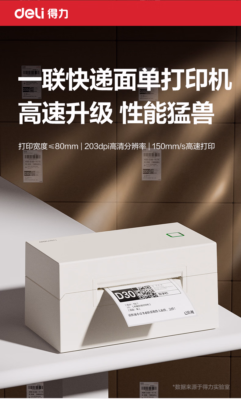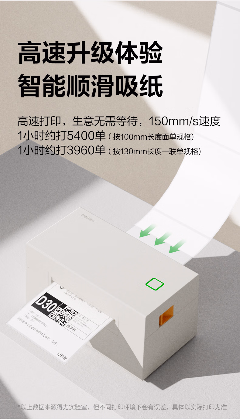 > 得力快递打印机快递单仓储物流电子面单跨境商用办公不干胶条码热敏标签打单机条码打印机 【一联单电脑版】电脑连接|高速热销款