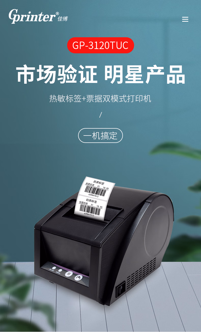 佳博(Gprinter)GP3120TUC标签打印机热敏不干胶条码打印机服装吊牌奶茶超市零售快递仓储物流面单固定资产标签机 2120TU【60毫米宽丨电脑连接】+3卷标签纸