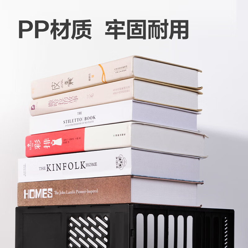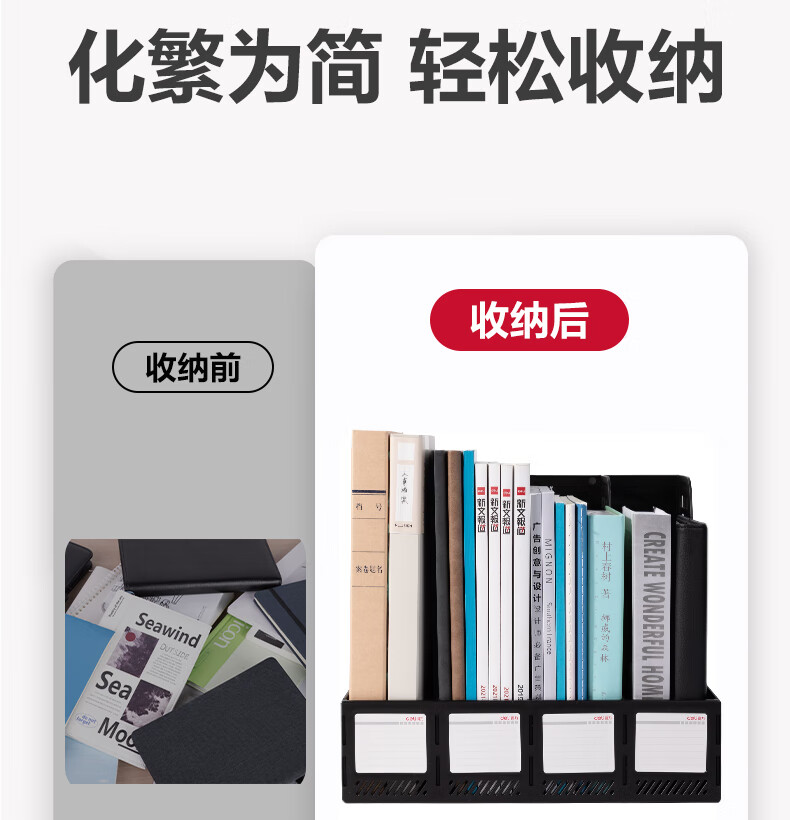 > 得力(deli)4联桌面文件框栏书立架档案收纳盒办公用品资料置物架书本收纳神器黑色