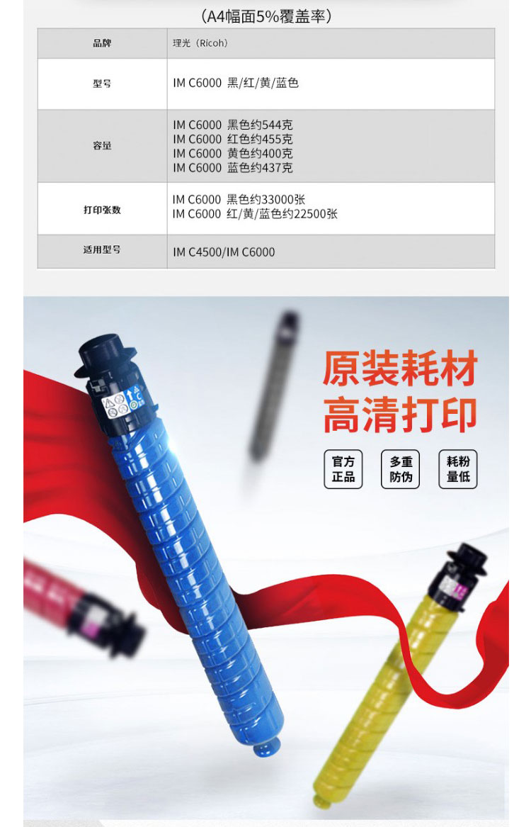 > 理光(Ricoh)IM C6000 蓝色墨粉盒1支装 适用IM C4500 / IM C6000