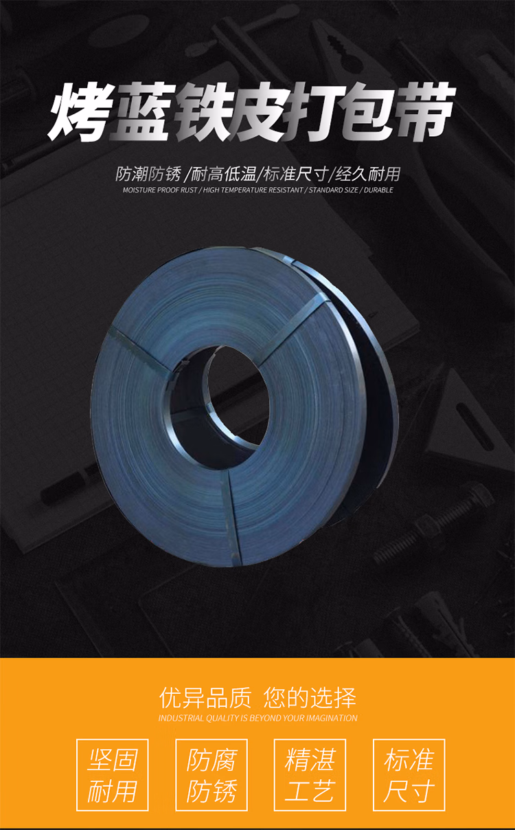> 海斯迪克 烤蓝铁皮带 钢带铁皮打包带 宽19mm*厚0.5mm(40KG) H-268