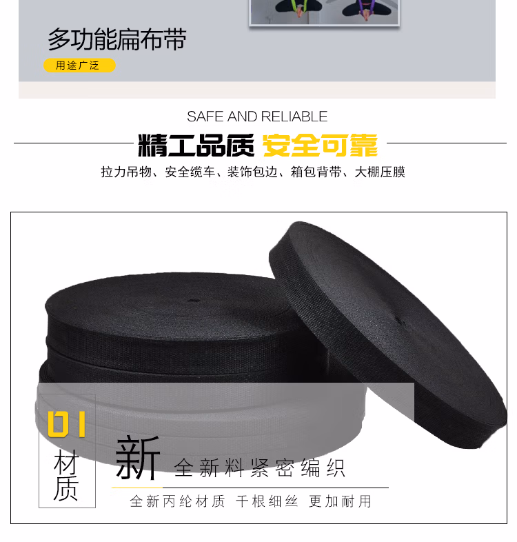 > 海斯迪克 编织绳子黑色打包带 扁布带绳 大棚压膜绳 3cm宽 50米 H-273