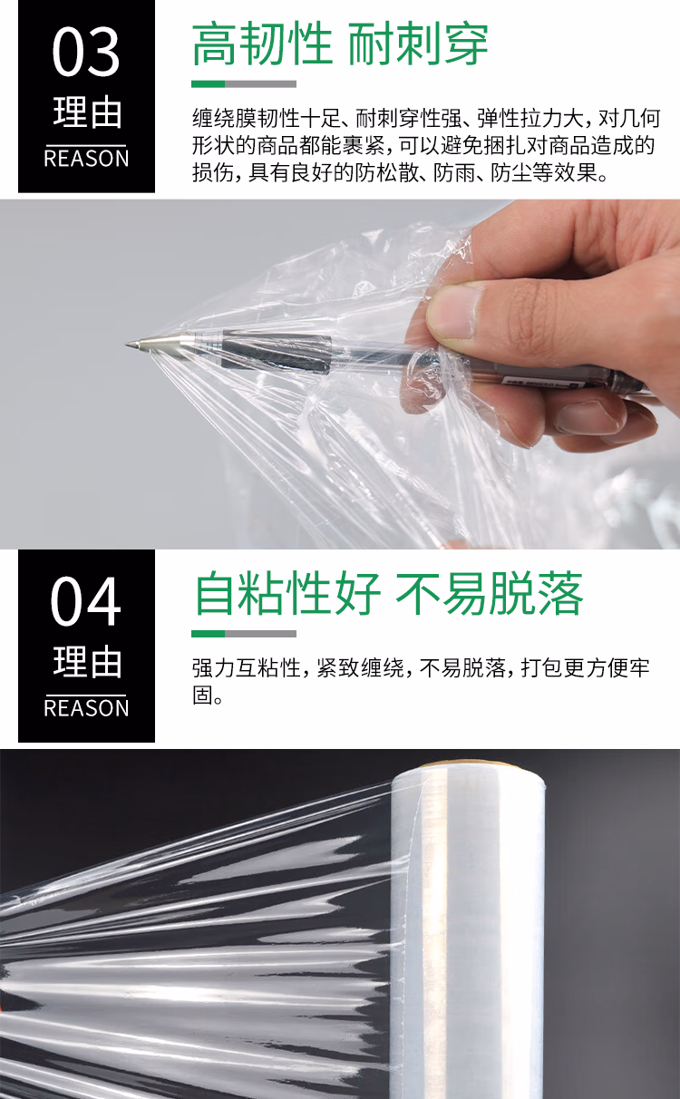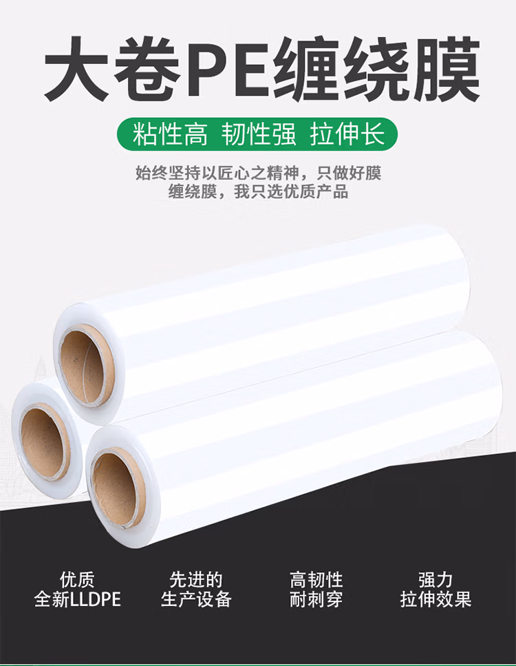 > 海斯迪克 缠绕膜 100cm*300m膜净重3.8kg/卷 单卷 PE拉伸膜手工打包膜 H-276