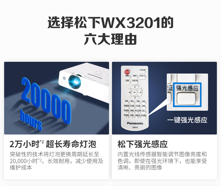 > 松下(Panasonic)PT-WX3201投影仪办公 投影机 会议室商务 培训教学(标清 3200流明 长寿命光源)
