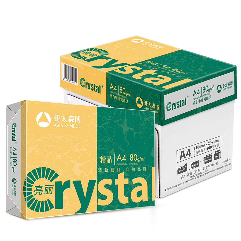 > 亚太森博 亮丽/Crystal 精品 A4 80g 纯白 5包/箱 复印纸C
