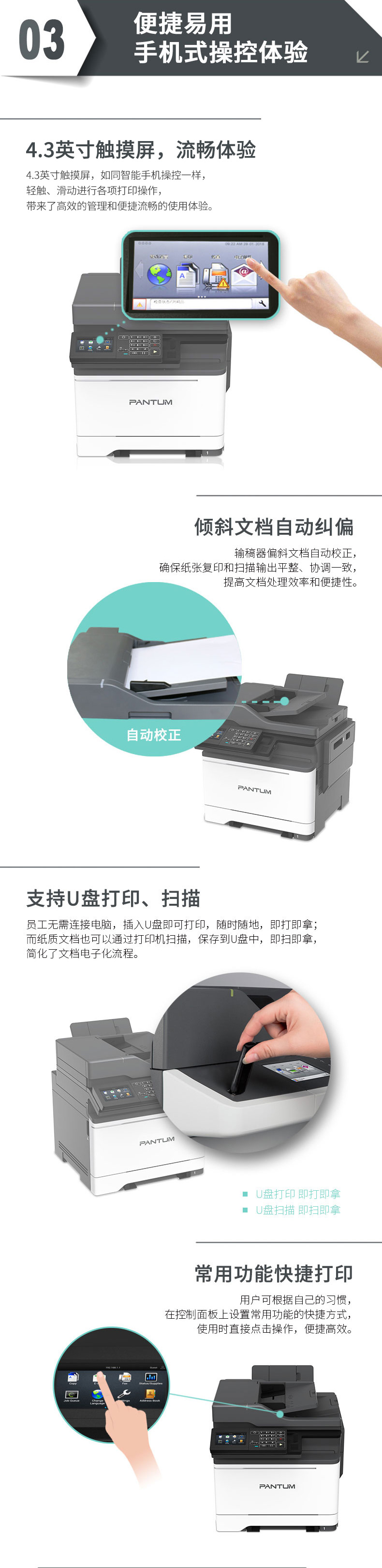 奔图 CM7105DN彩色激光多功能一体机 打印复印扫描传真 自动双面带网络 4.3英寸彩色触摸屏 奔图彩色激光一体机(四合一)CM7105DN