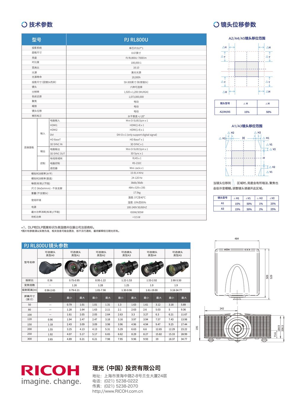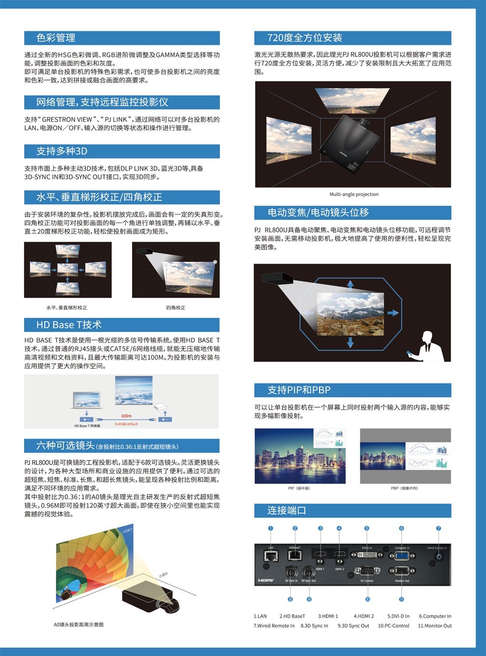 > 理光工程投影仪PJ RL800U 高清高亮激光融合 办公会议投影机 官方标配【7000流明】 黑色