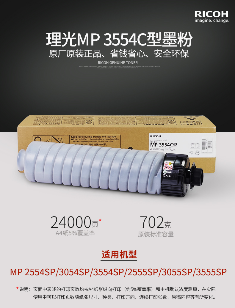 理光MP 3554C粉盒 原装墨粉MP 2554 3054 2555 3055 SP复印机墨粉 碳粉
