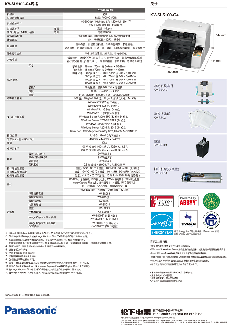 > 松下(Panasonic)KV-SL5100-C A3高速双面彩色文档扫描仪 116PPM