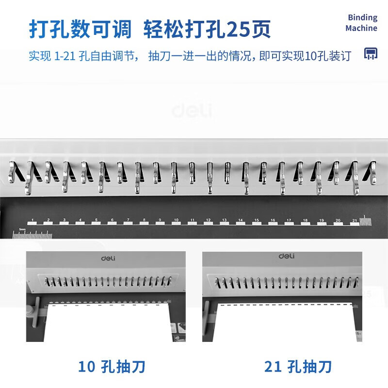 得力(deli)胶圈/夹条装订机 21孔文件打孔机 梳式财务装订机 3874 单次可打25张
