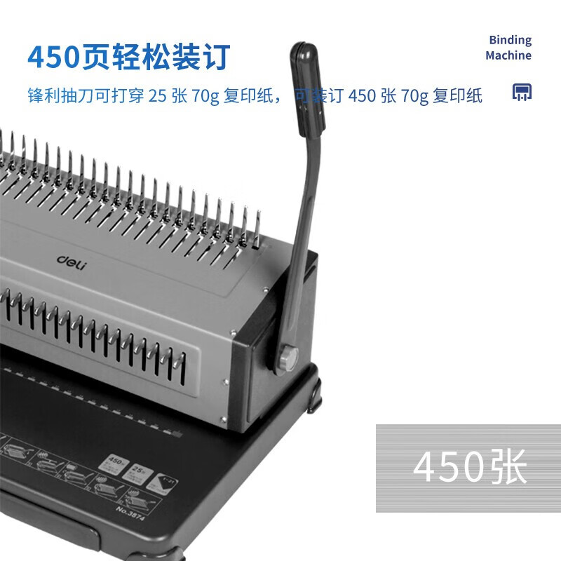 > 得力(deli)胶圈/夹条装订机 21孔文件打孔机 梳式财务装订机 3874 单次可打25张