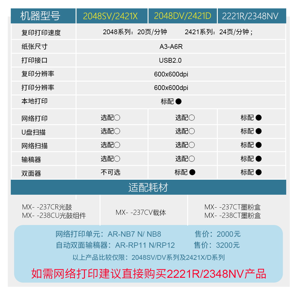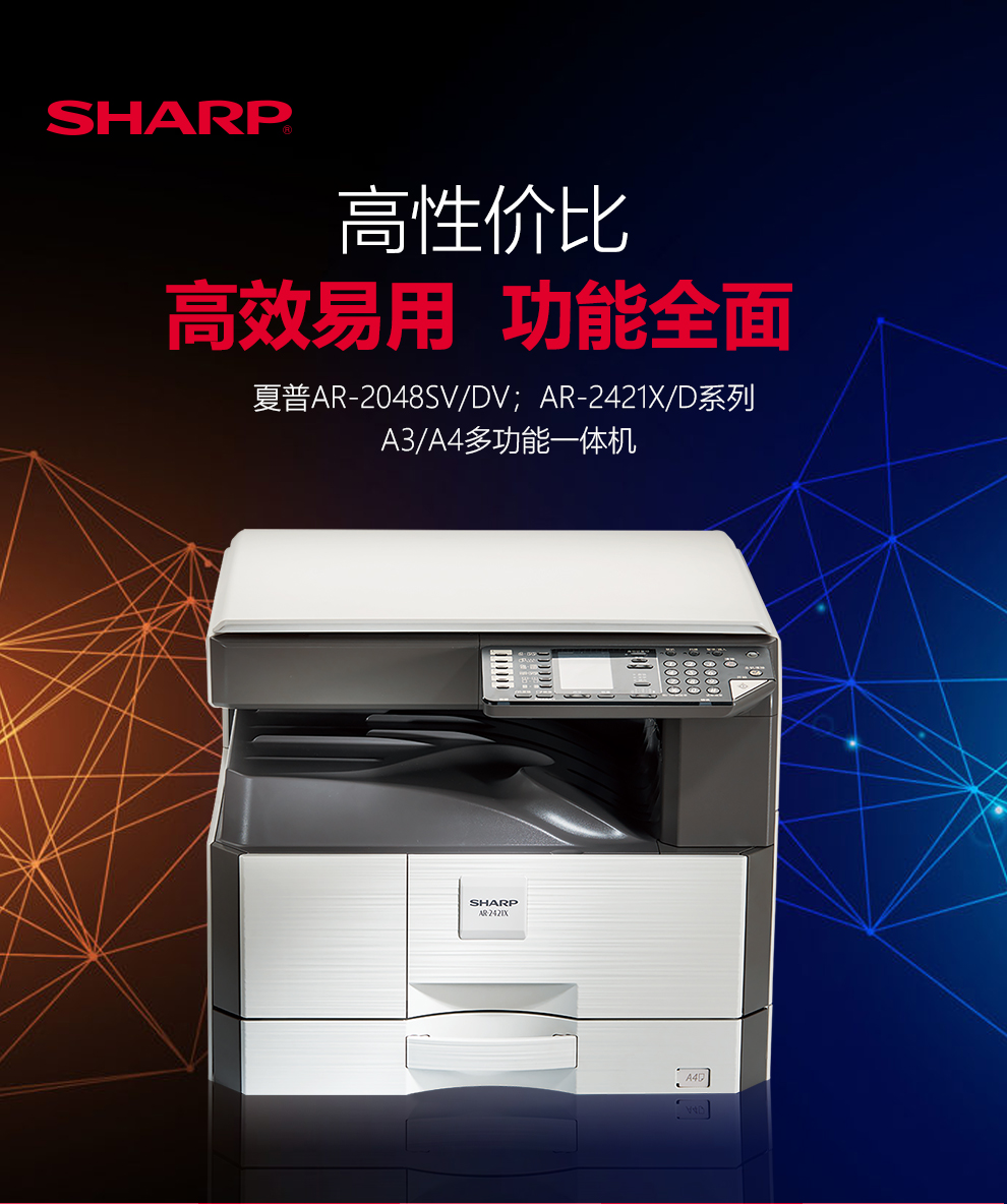 夏普(SHARP)AR-2421/2221/2348黑白数码复合机 复印机 多功能复印打印扫描一体机 2421X主机 【单张单面复印.扫描.打印】