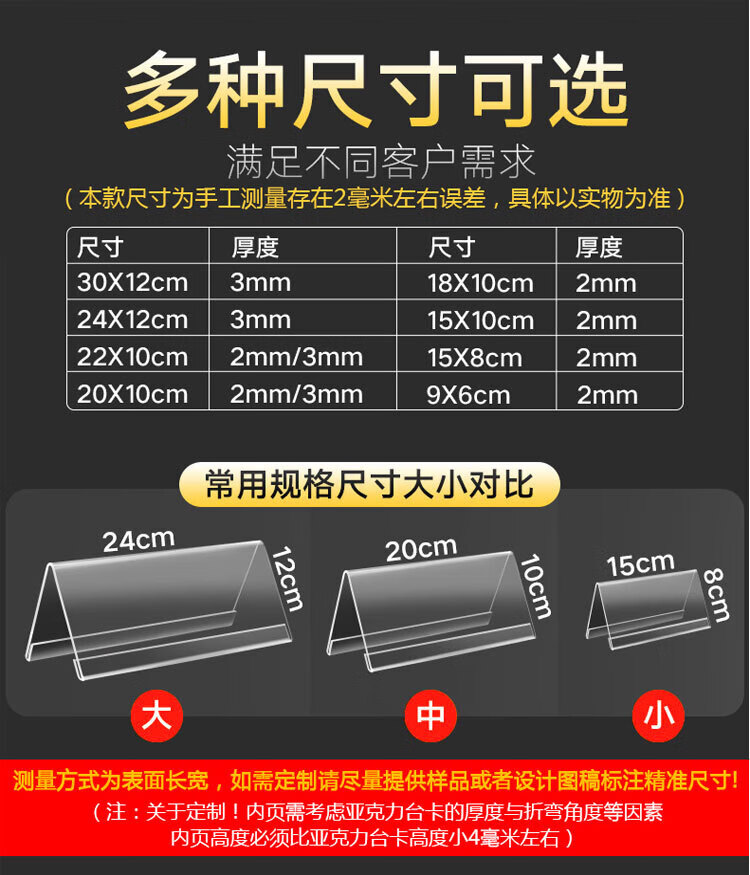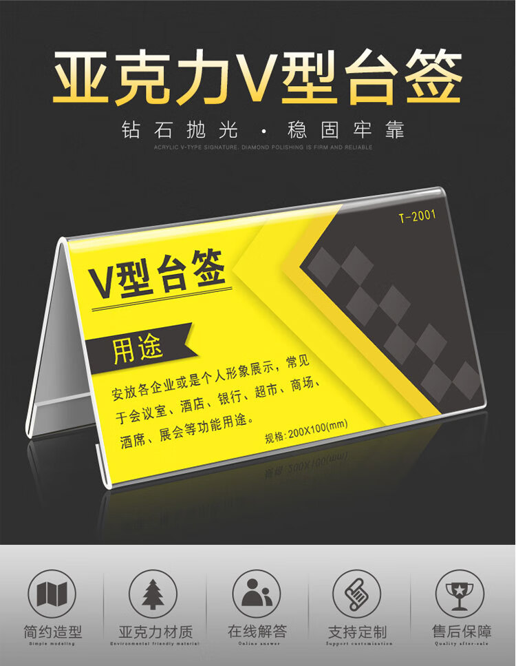 海斯迪克 HKW-335 亚克力V型台卡桌牌 会议牌席卡三角卡台座 150×80×2mm