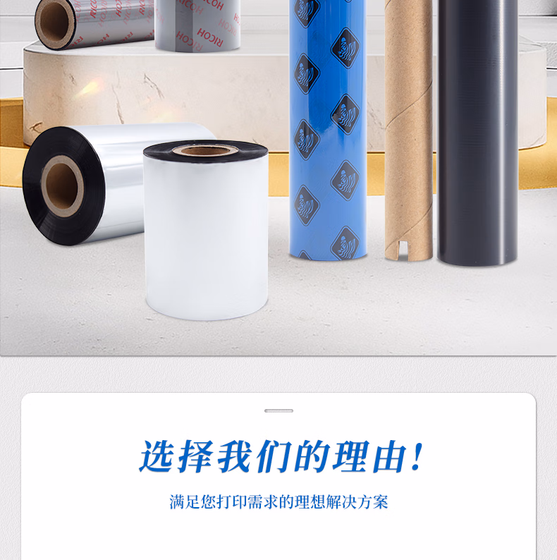 维嘉乐(WEIJIALE) 理光蜡基全树脂基碳带斑马专用原装色带TSC热转印不干胶铜版纸立象条码耗材 B110A理光混合基碳带【70mm*300米】