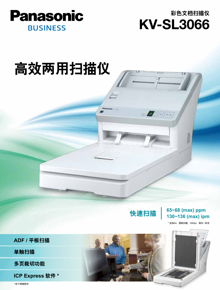 > 松下(Panasonic)KV-SL3066 A4 ADF 平板 高速高清双面彩色文档扫描仪