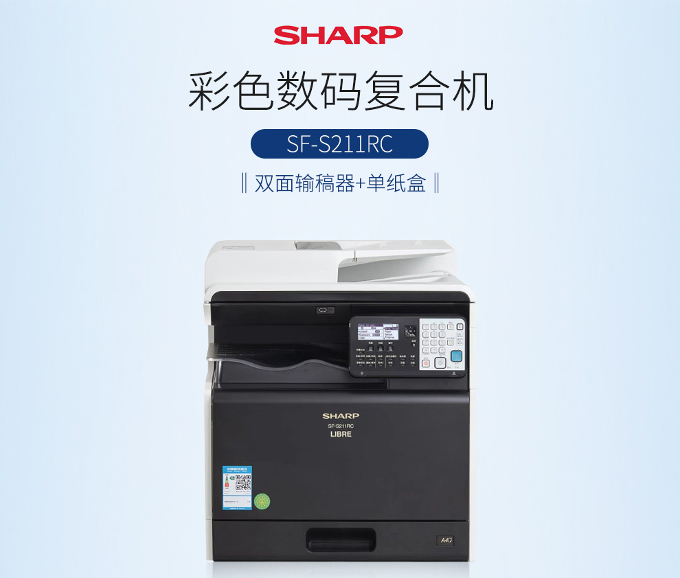 > 夏普(SHARP)SF-S211RC 彩色数码复合机(含双面输稿器 单纸盒)A3多功能打印复印一体机 免费安装售后