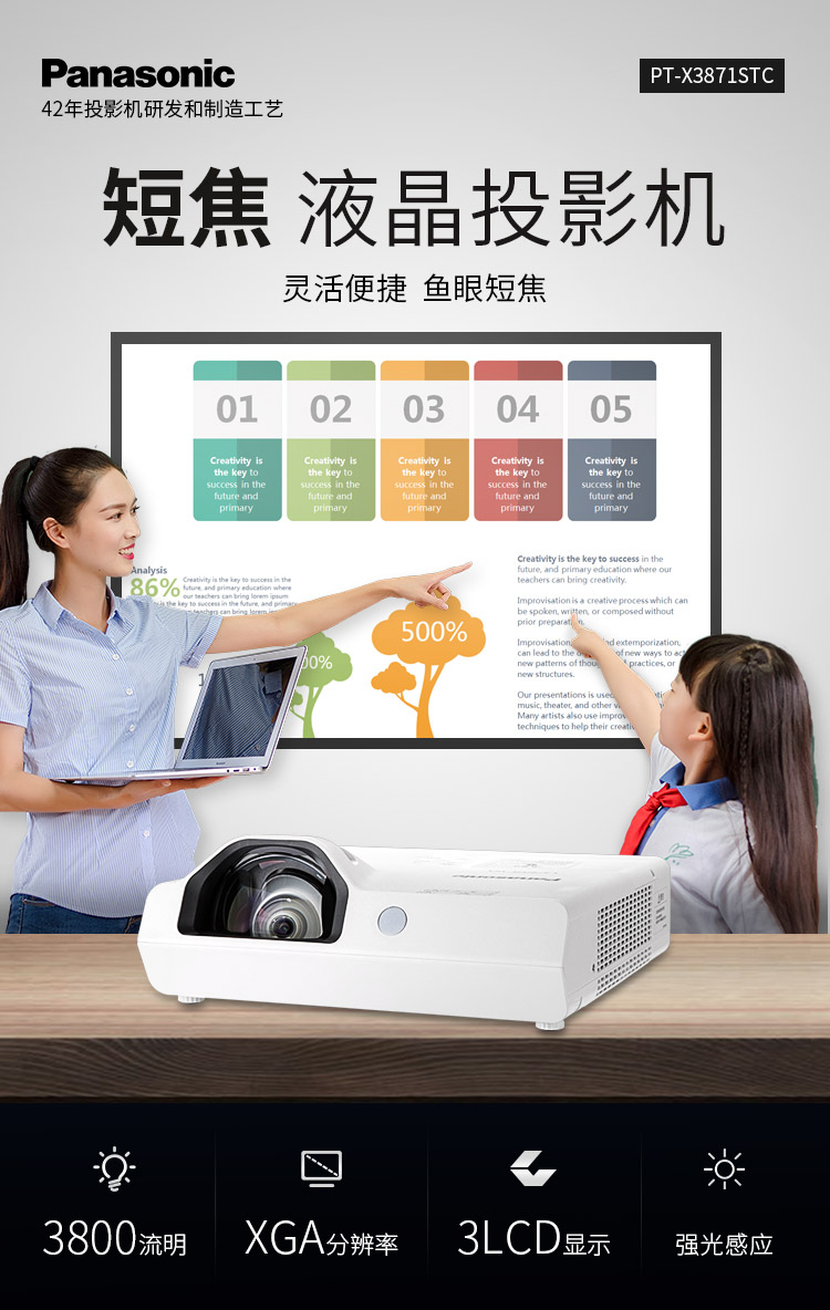 > 松下(Panasonic)PT-X3871STC 短焦投影仪 投影机办公教育(标清 3800流明)