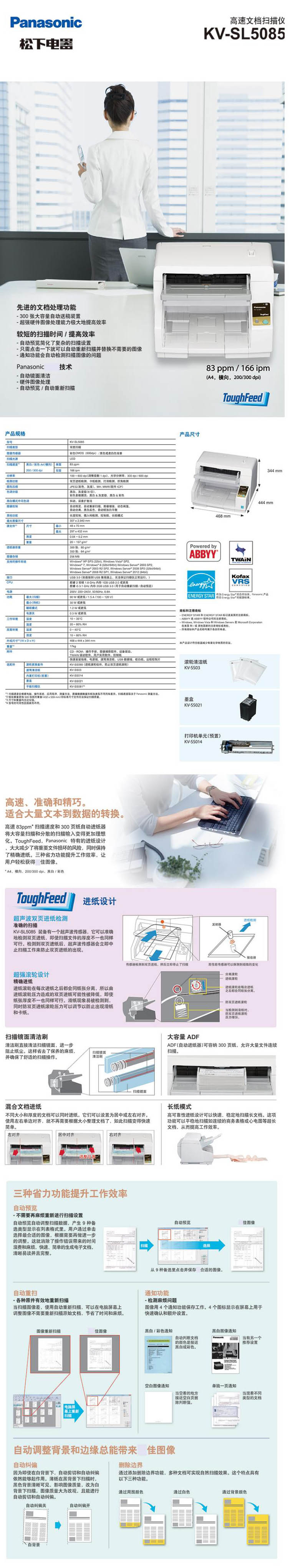 松下 KV-SL5085 A3彩色高速文档扫描仪 83ppm