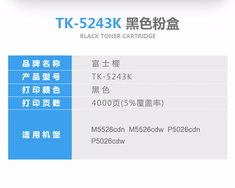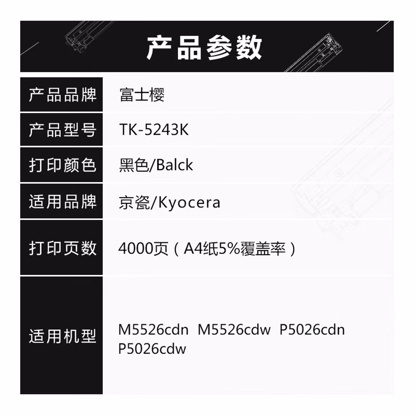 > 富士樱 TK-5243 K 黑色墨粉盒/碳粉 适用京瓷TASKalfa ECOSYS M5526cdn M5526cdw P5026cdn P5026cdw