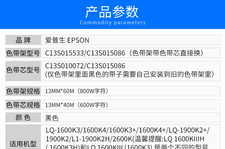 > 原装爱普生EPSON 1600K3色带架LQ1900K2H 1900KII 1600KIII色带芯 S015086色带架(含色带芯)