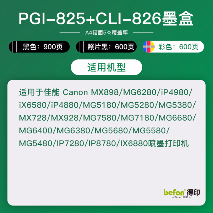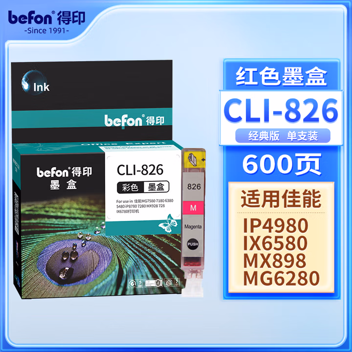得印(befon)CLI-826大容量黄色墨盒(适用佳能 MX898/MG6280/iP4980/iX6580/MG6180/MG8180/MG8280/MX888)