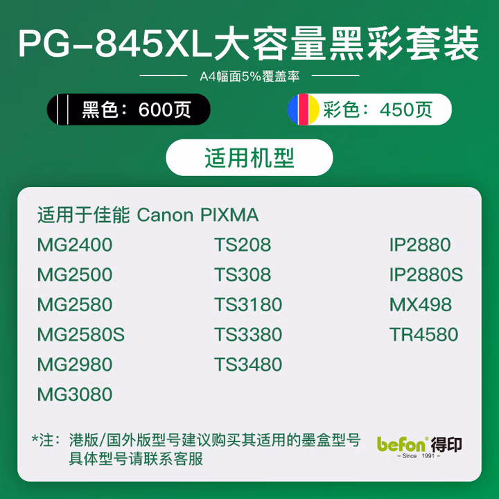 得印(befon)CL-846大容量彩色墨盒(适用佳能MG3080/MG2580/MG2400/MG2500/MX498/iP2880)