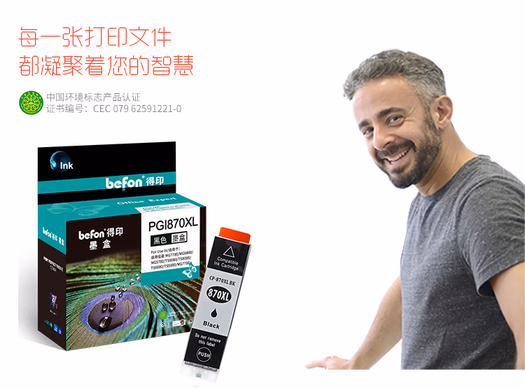 > 得印(befon)PGI870黑色墨盒(适用佳能 MG7780/MG6880/MG5780/TS9080/TS8080/TS6080/TS5080/MG7700)