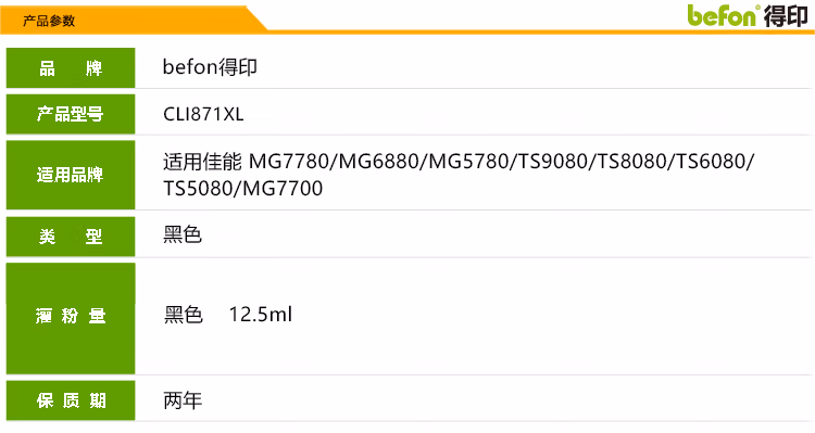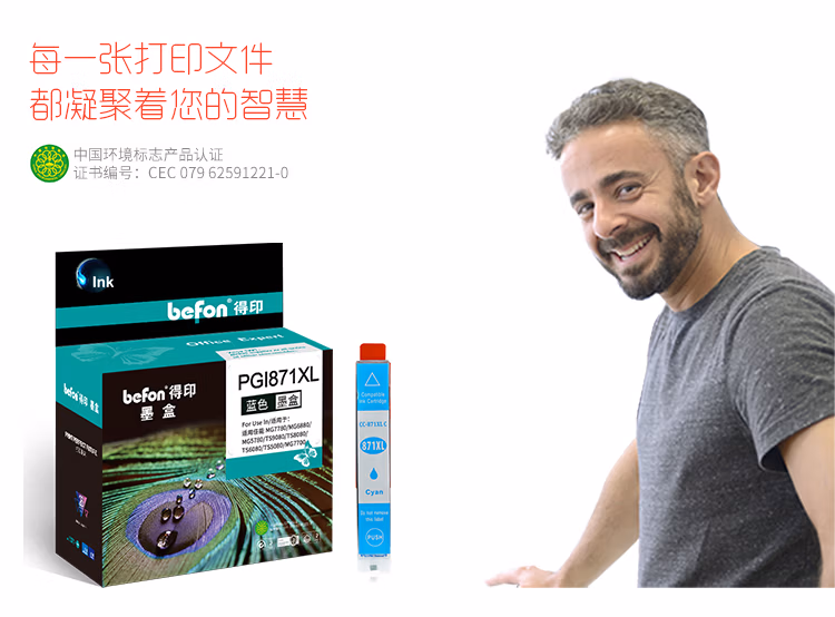 > 得印(befon)CLI871红色墨盒(适用佳能 MG7780/MG6880/MG5780/TS9080/TS8080/TS6080/TS5080/MG7700)