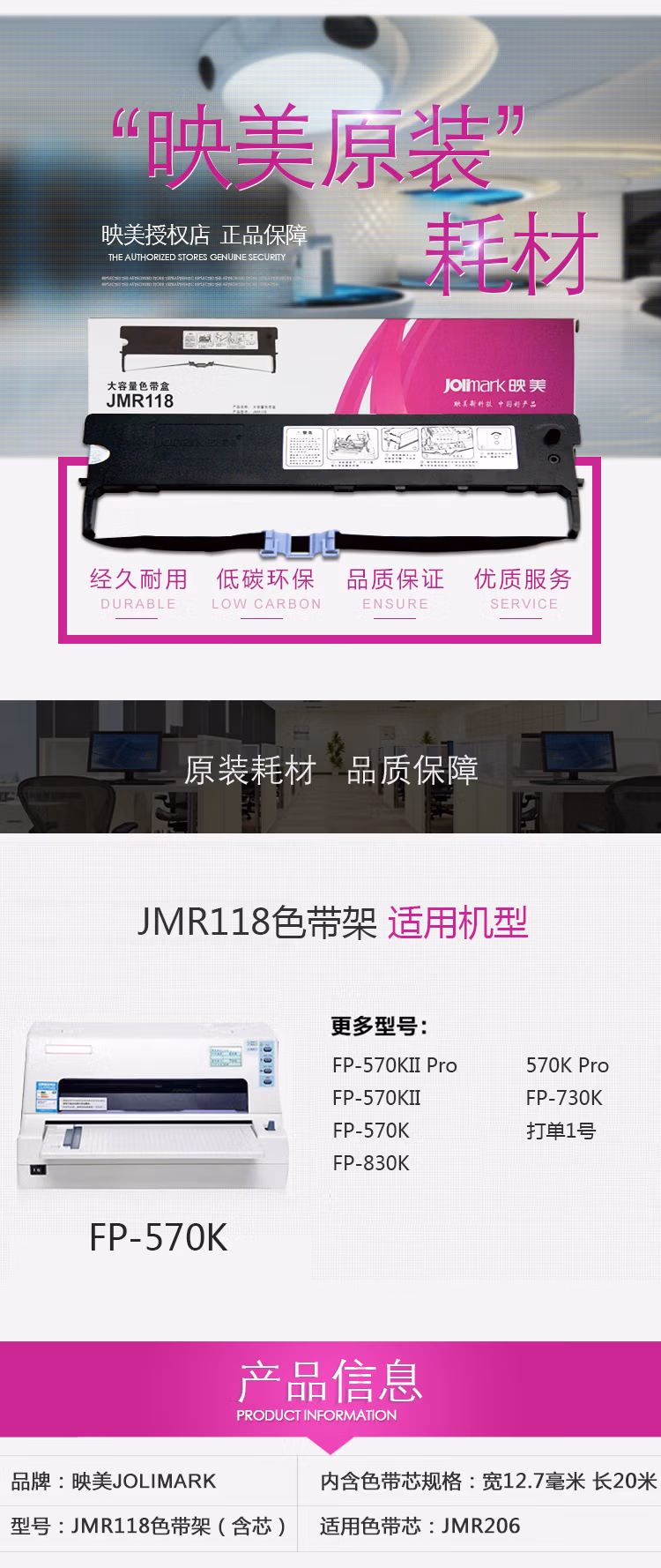 > 映美(Jolimark)FP-570K FP-570KII FP-570KPro针式打印机原装色带架 映美JMR118色带架(含芯)1个