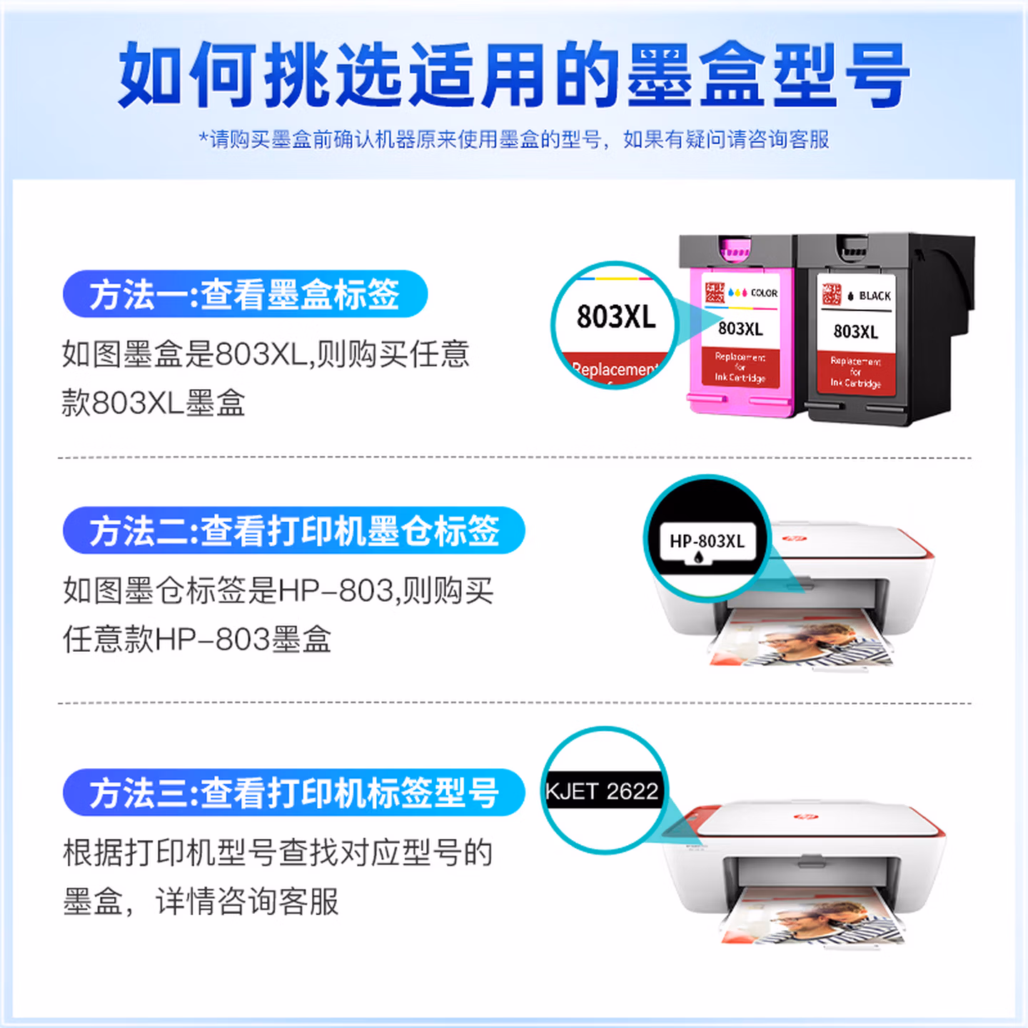 得印803黑彩套装墨盒 升级版可加墨 适用惠普HP Deskjet 1112 2131 1111 2132 2621 2622 2623 2628打印机