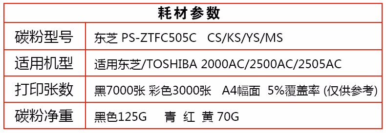 > 东芝(TOSHIBA)T-FC505C原装粉盒2000AC墨盒 墨粉2500/3005/3505碳粉 T-FC505C-Y-S低容黄色(3000页)