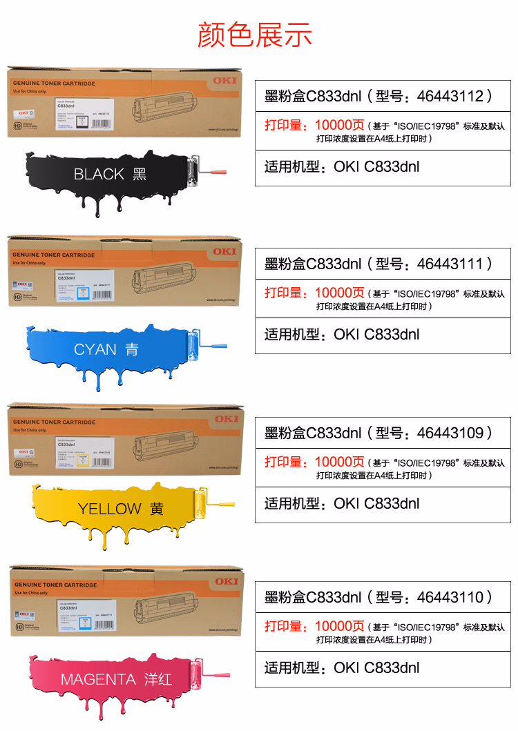 > OKI 墨粉 粉仓 C833dnl 碳粉粉盒 原装打印机耗材 红色墨粉10000页