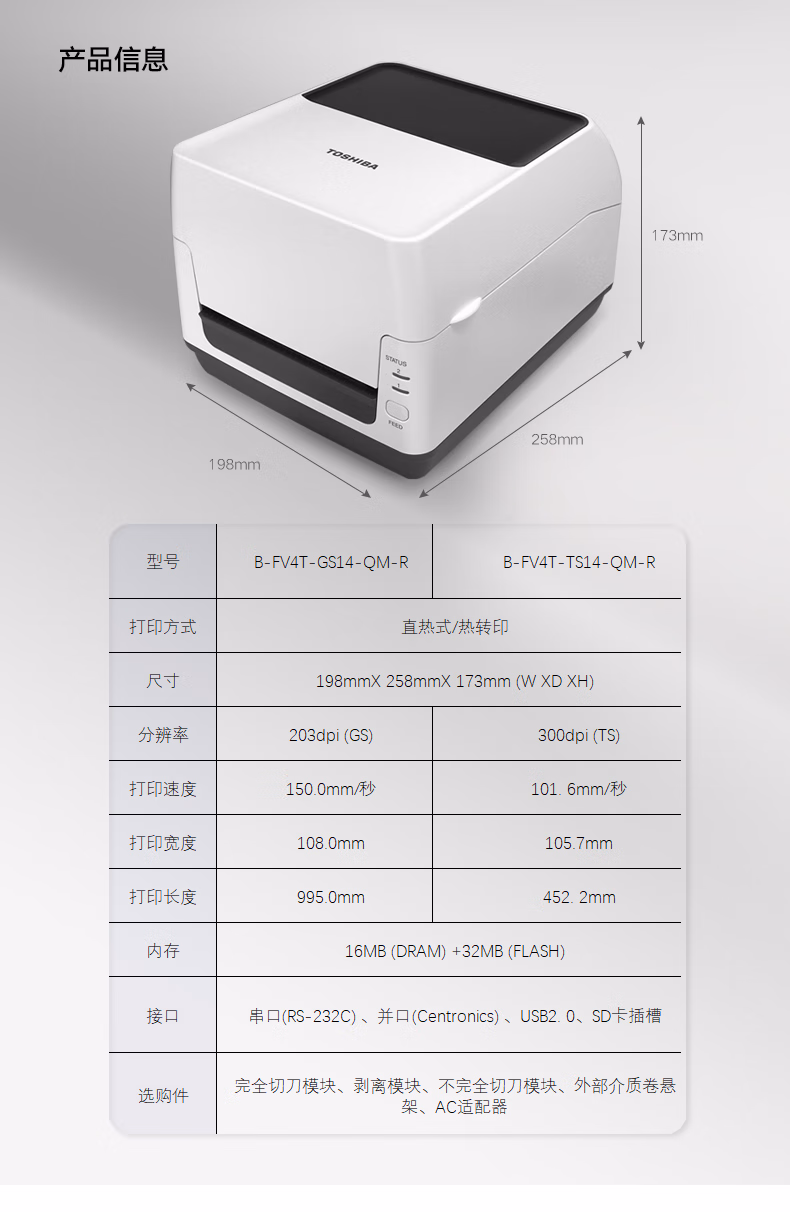 > 东芝 TOSHIBA B-FV4T-TS14-CN-R条码打印机