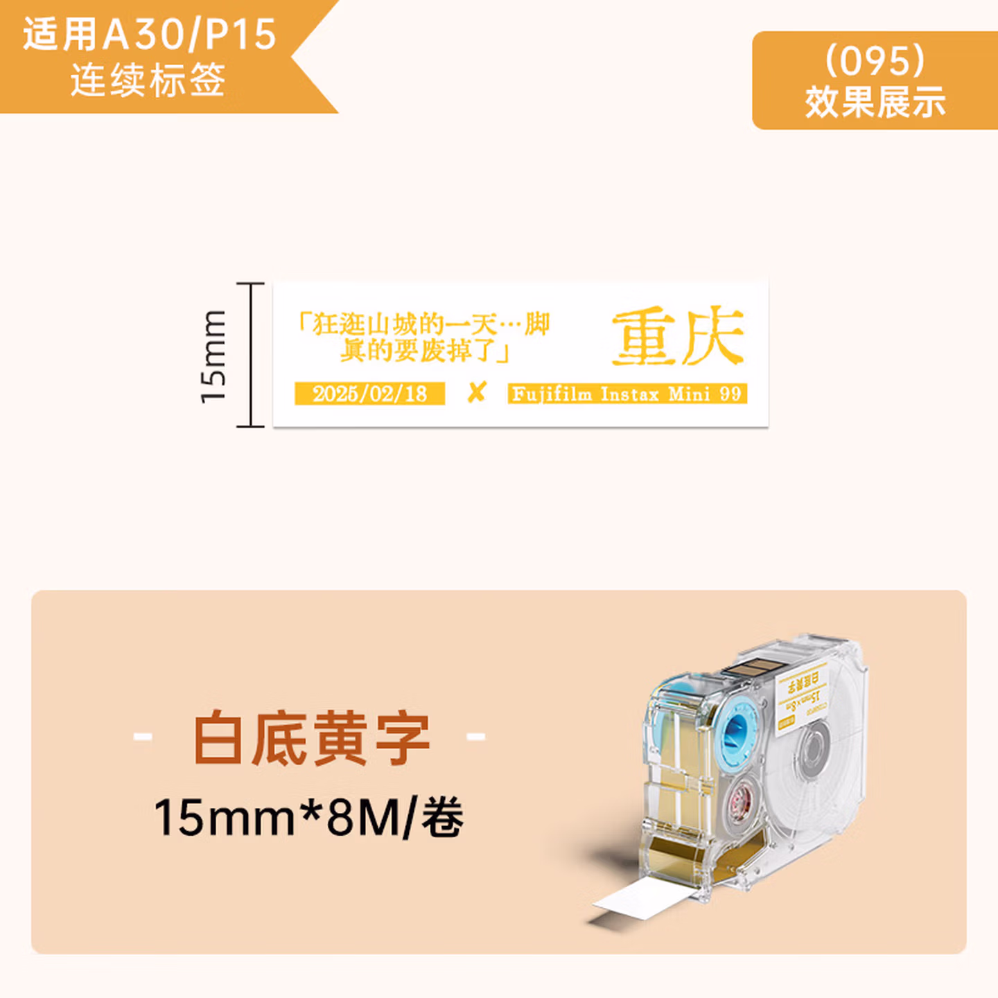 095白底黄字15mm*8m