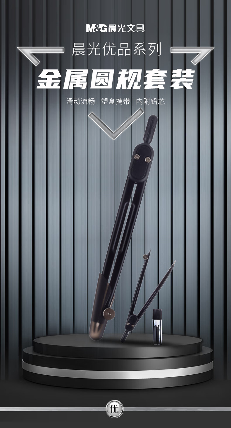 > 晨光(M&G)文具金属圆规套装 优品系列学生绘图考试圆规(内附3根HB铅芯) 学生文具套装ACS90884考试推荐考研中高考专用