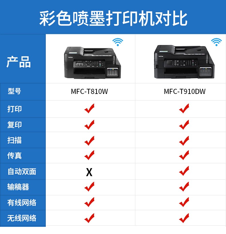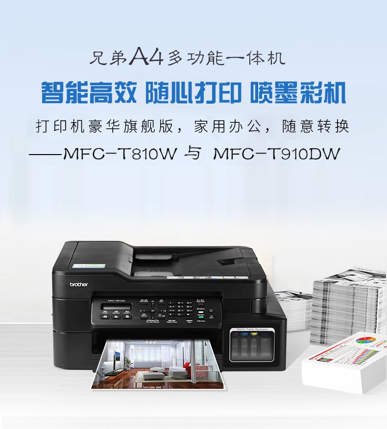 兄弟A4彩色喷墨打印机连供墨仓加墨打印复印扫描一体机MFC-T310/T810W/T910DW 青色/约5000页