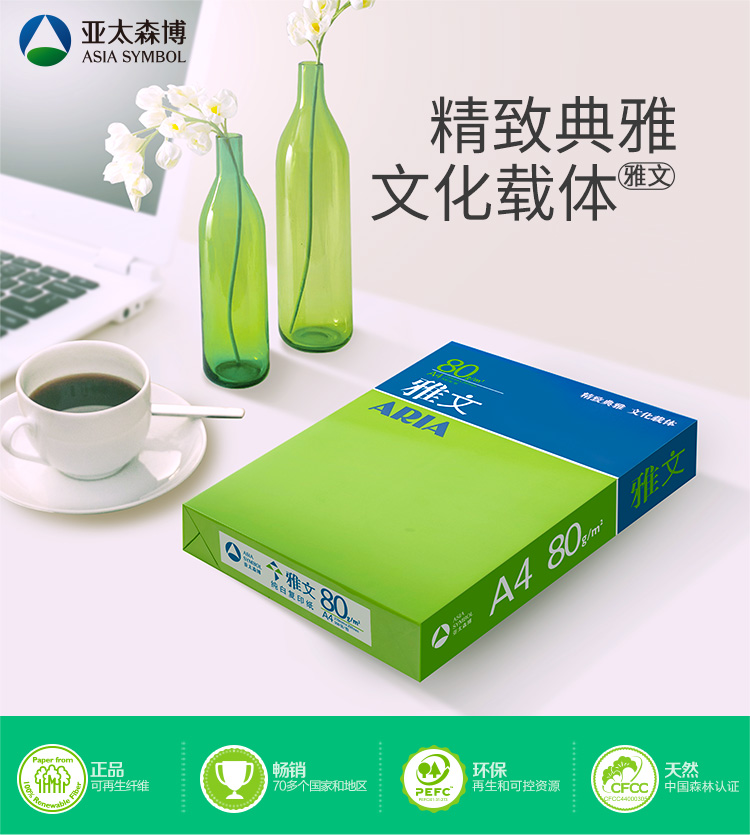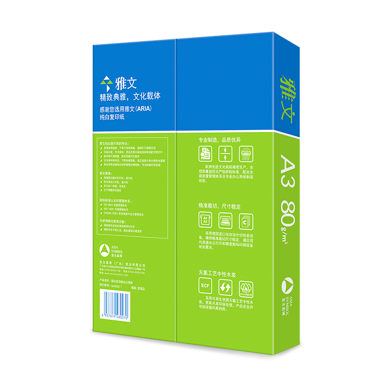 > 亚太森博 雅文复印纸 A3 80G 500张/包 5包/箱装