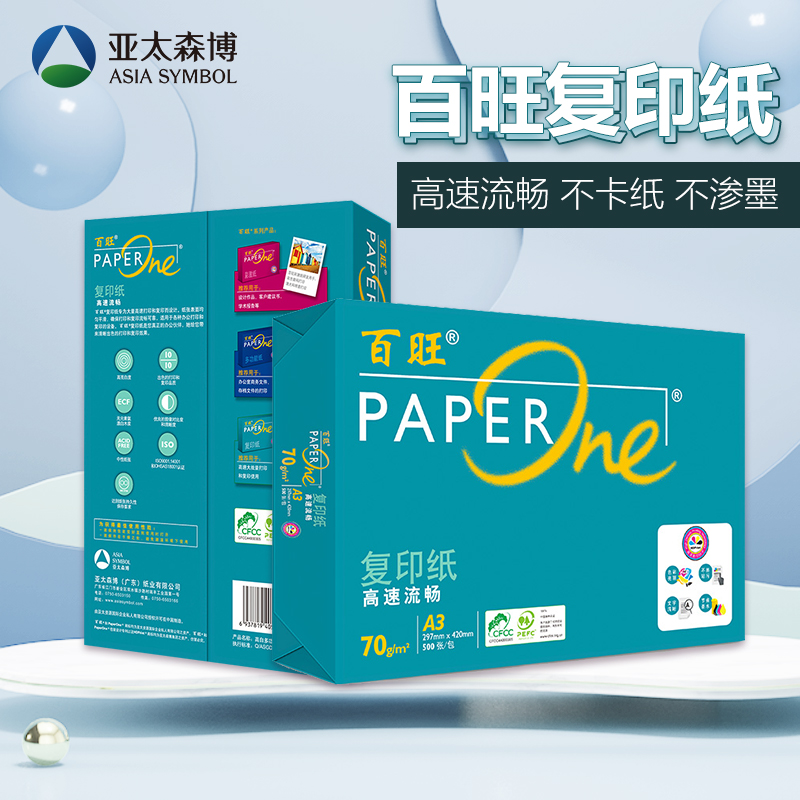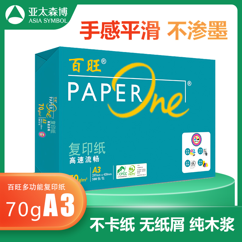 > 适用亚太森博绿A4a3打印纸复印纸70克草稿纸办公用品双面多省 绿百旺70gA3 4包【】