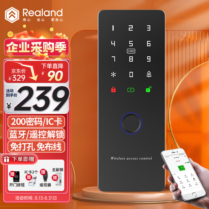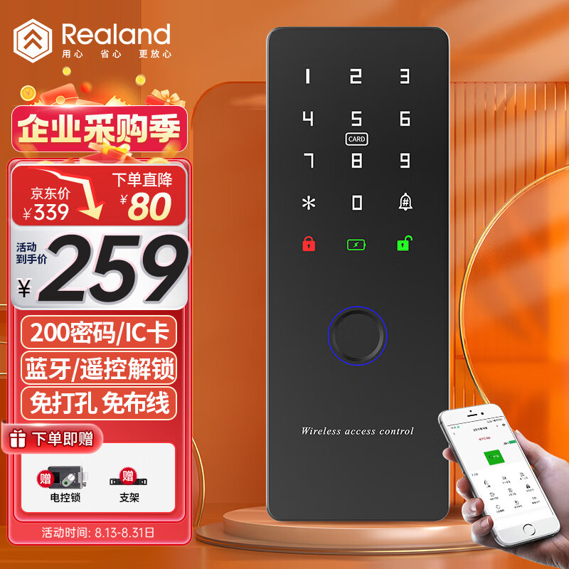 > 真地(Realand)人脸识别门禁一体机单门磁力锁套装办公室密码IC卡门禁系统刷脸开门含12V5a电源 F101A
