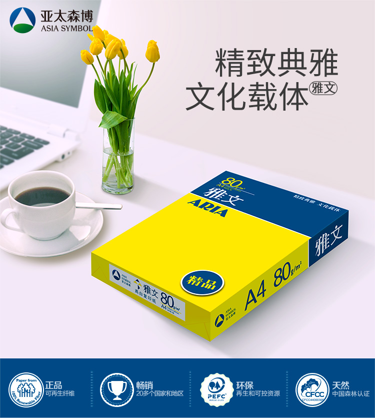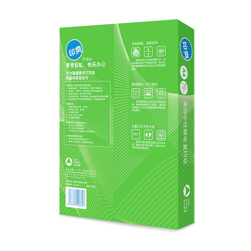 > 亚太森博 特级印爽 A4 75G 复印纸 500张/包 8包/箱