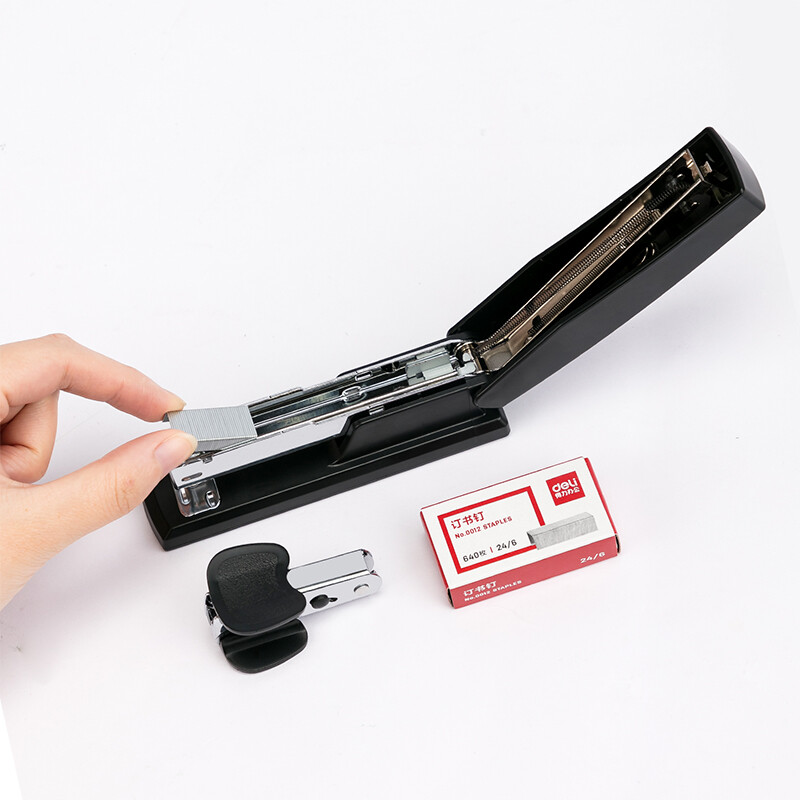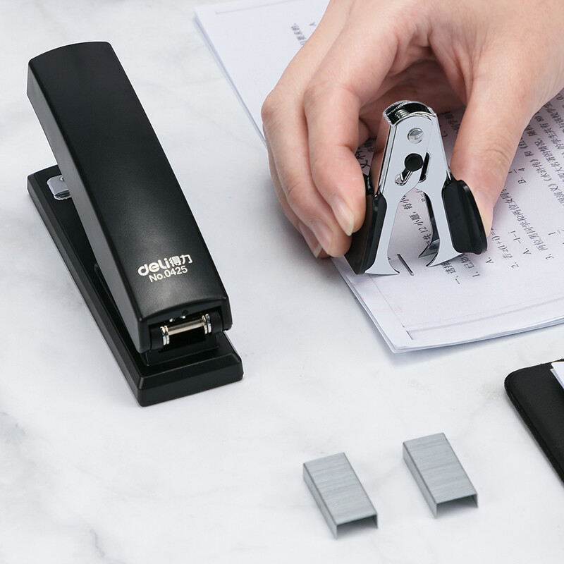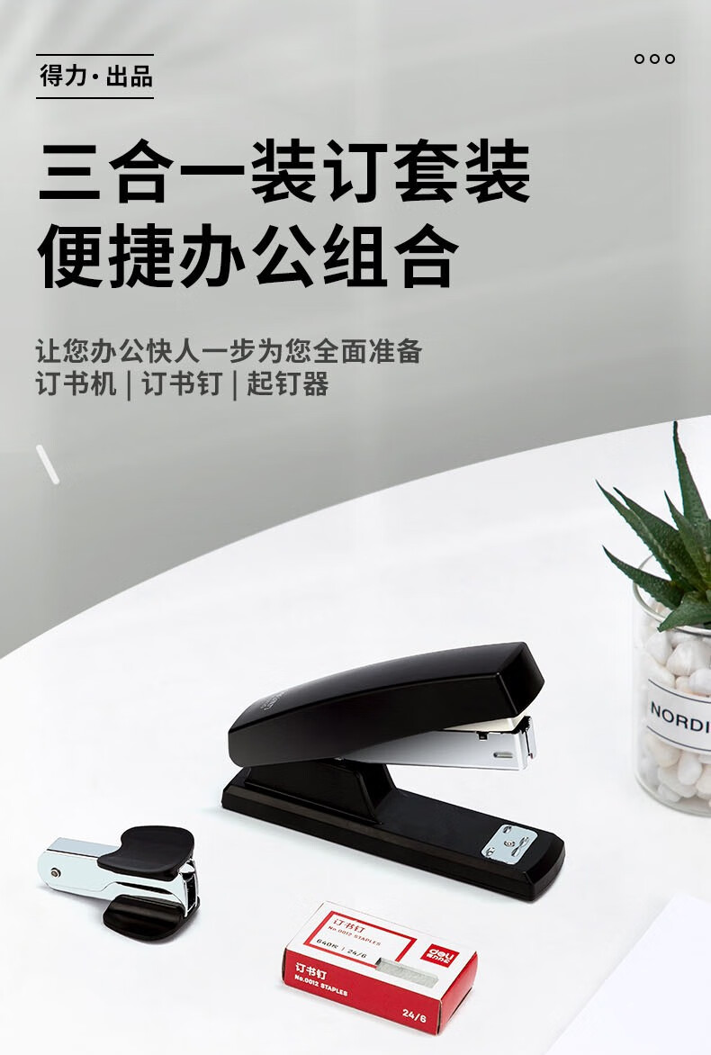 > 得力(deli)12#办公订书机3件套(订书器+订书钉+起钉器) 办公用品 黑色0354