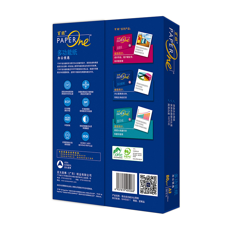 亚太森博 蓝百旺A3 高级复印纸 80g 单包装 500张/包 J