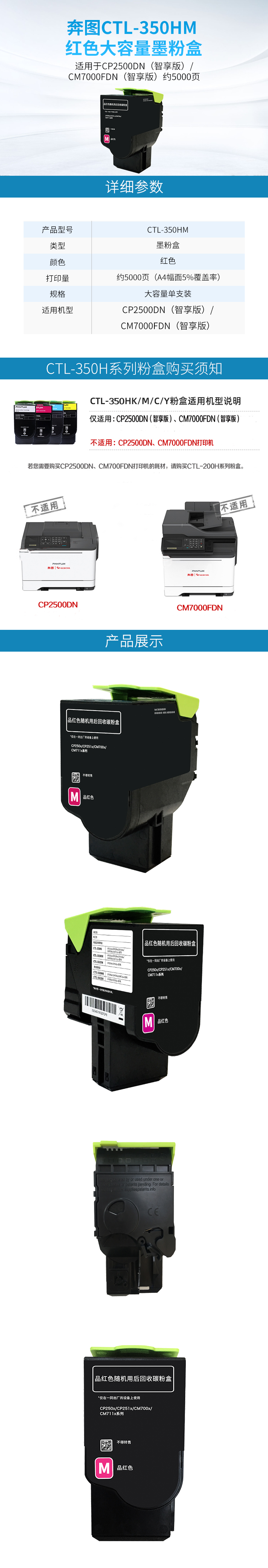 > 奔图(PANTUM)CTL-350HC 墨粉盒 青色大容量单只装 适用于CP2500DN(智享版)/CM7000FDN(智享版)约5000页