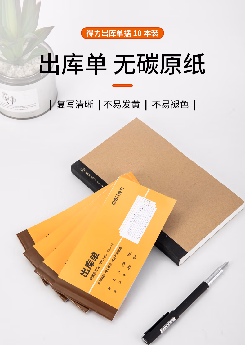 得力(deli)【超级爆款】10本无碳复写三联出库单据 财务手写无碳复写单据 财务用品 办公用品 9391
