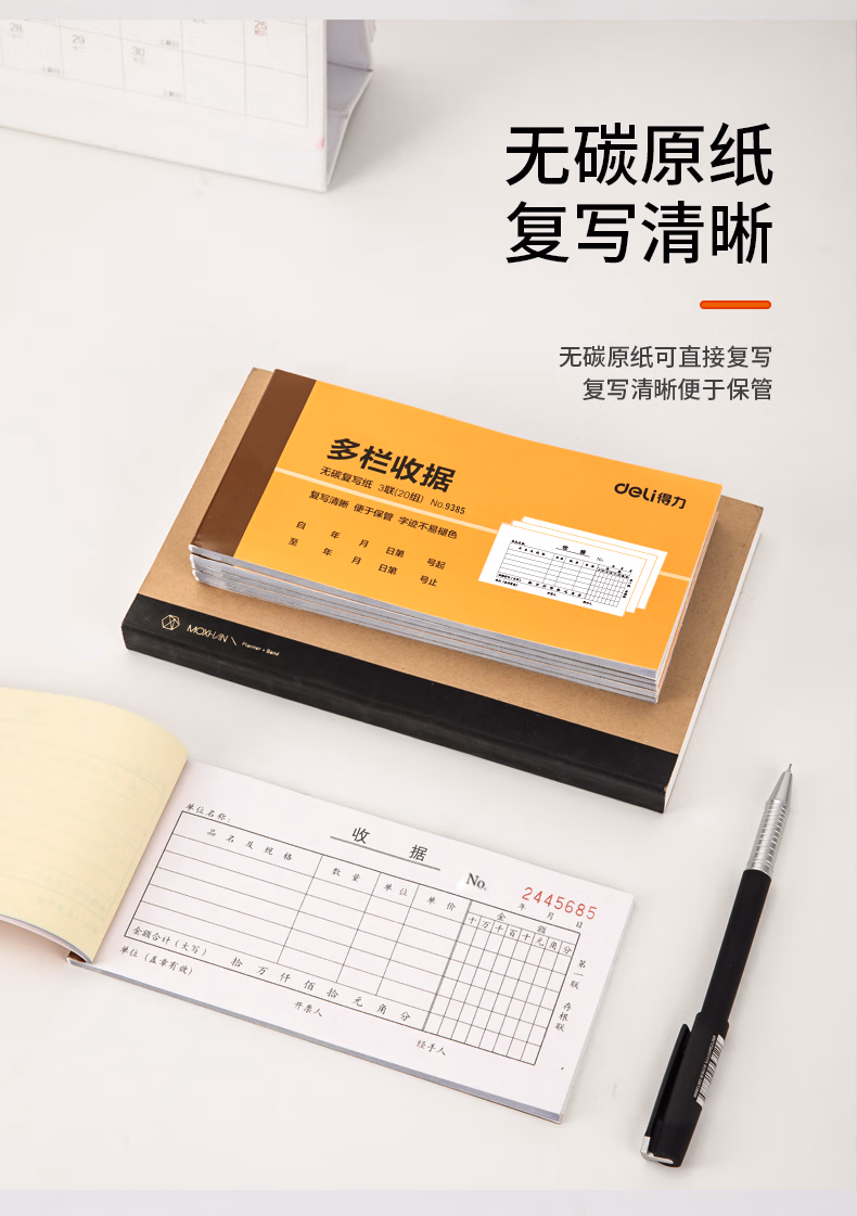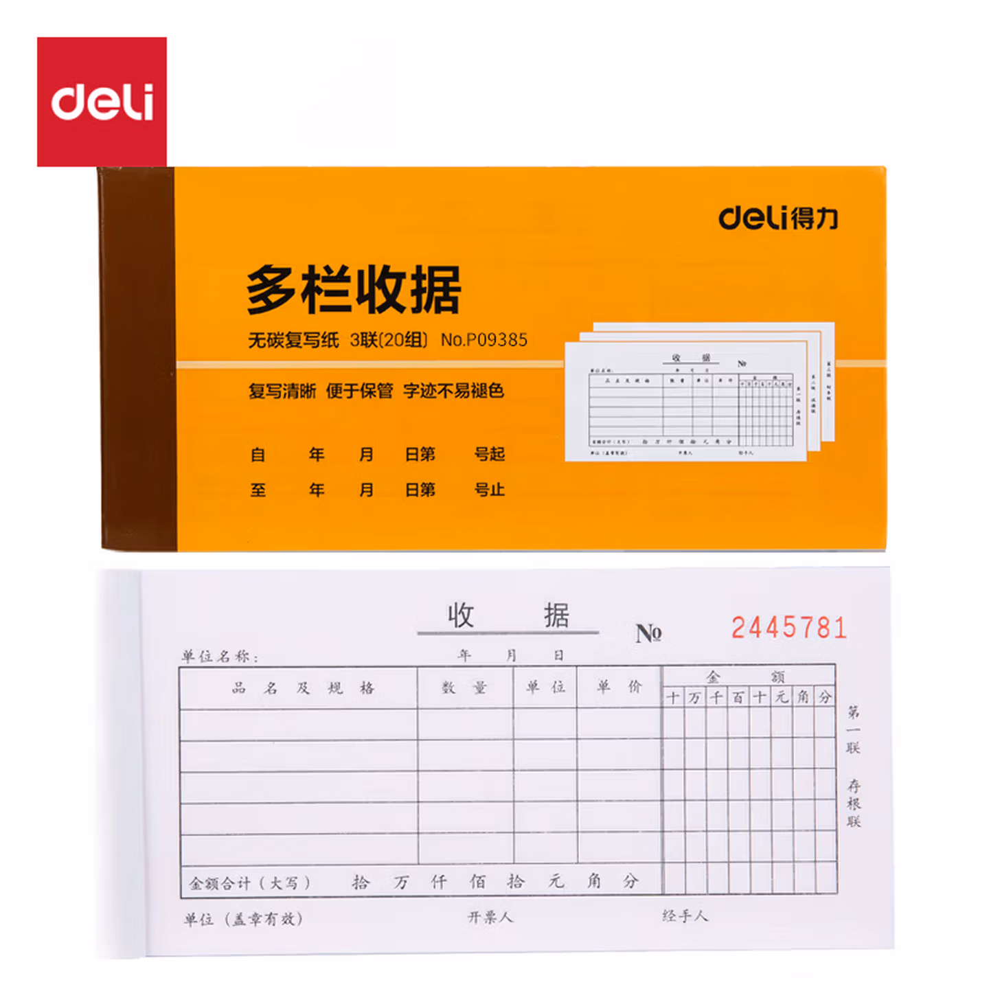 > 得力(deli)10本三联多栏收据无碳复写 财务手写单175*87mm 财务用品 办公用品 p09385