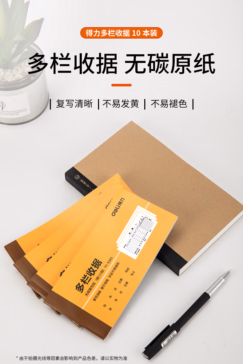 得力(deli)10本三联多栏收据无碳复写 财务手写单175*87mm 财务用品 办公用品 p09385