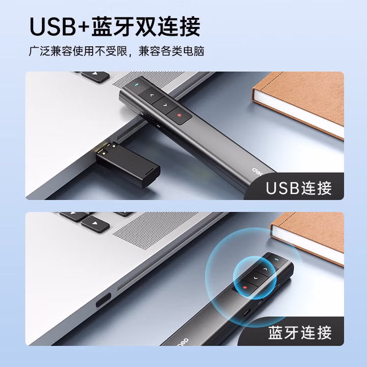 > 得力激光笔激光PPT翻页笔 数字物理双激光 适用LED屏希沃白板数码投影=空中飞鼠教师演讲笔50681P