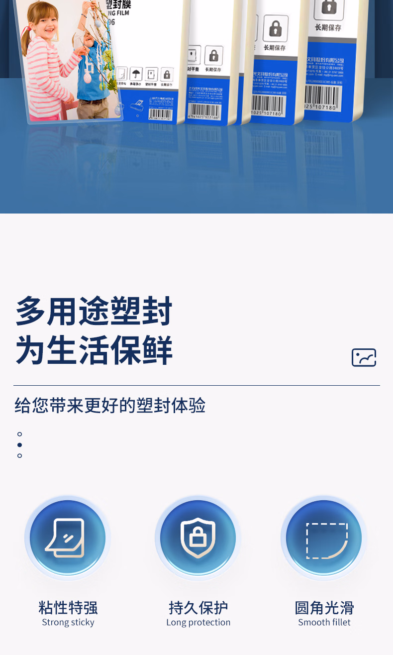> 晨光塑封机通用塑封膜a4照片文件过塑机用过塑膜高清卡膜防水潮 加厚塑封膜/A3(8丝)50张/包
