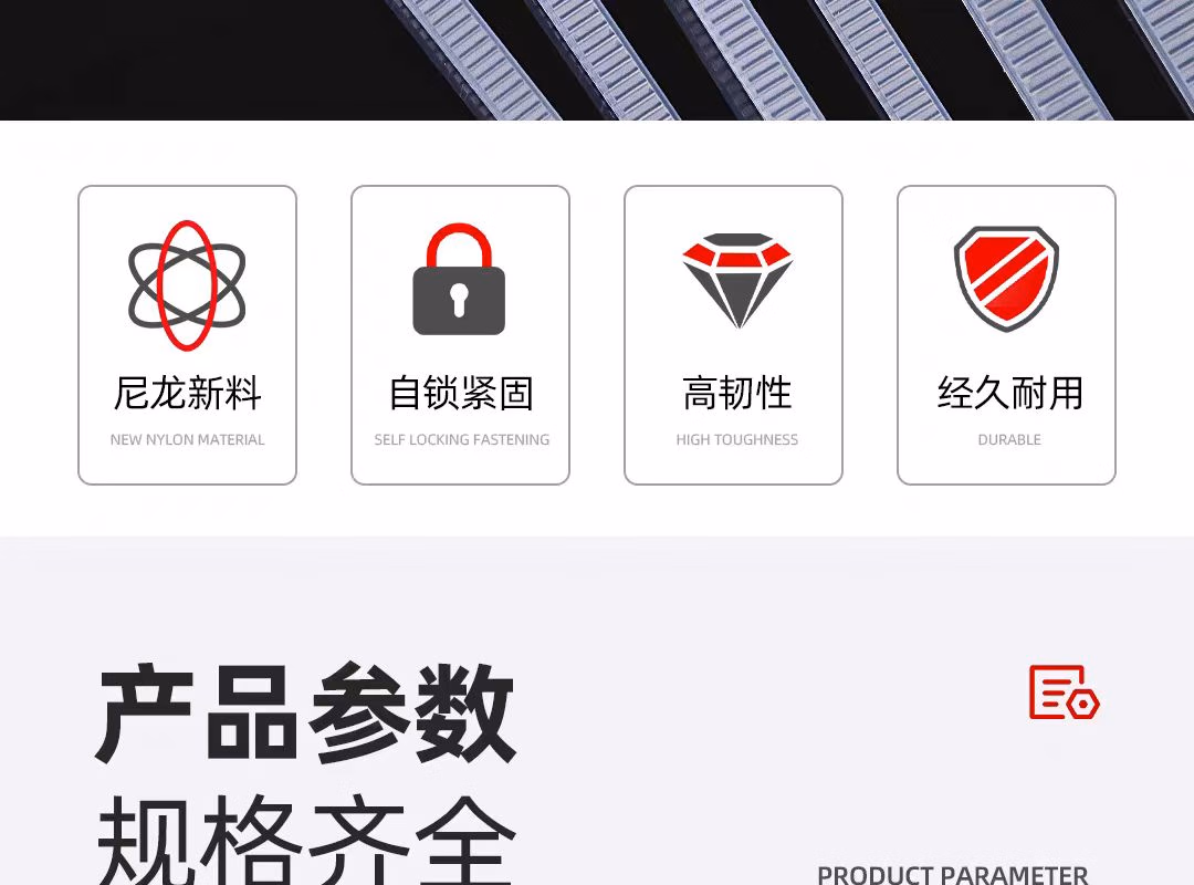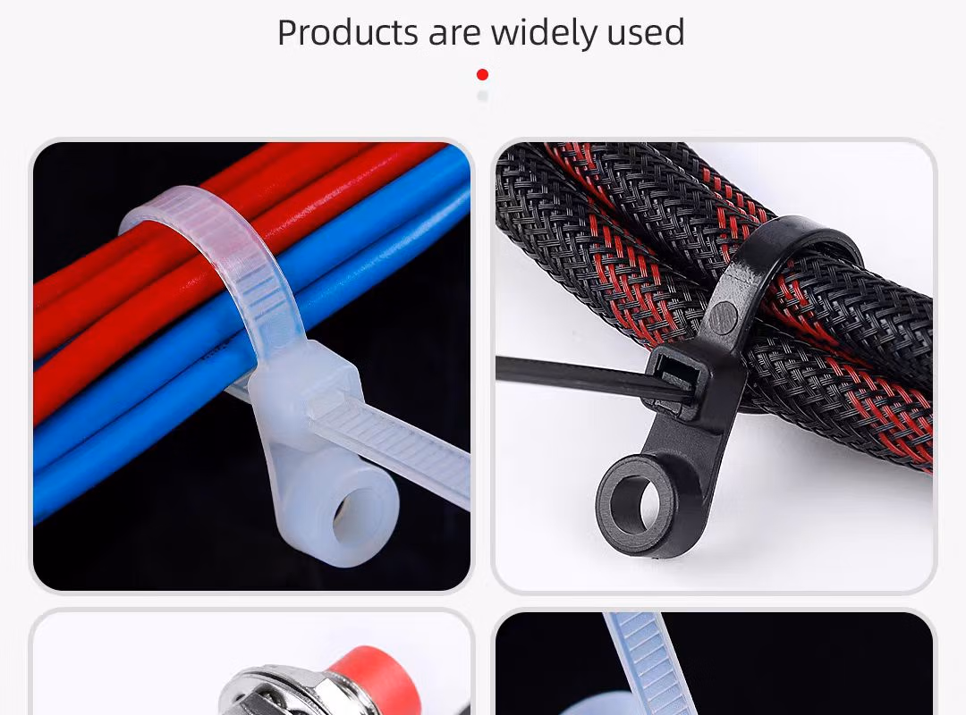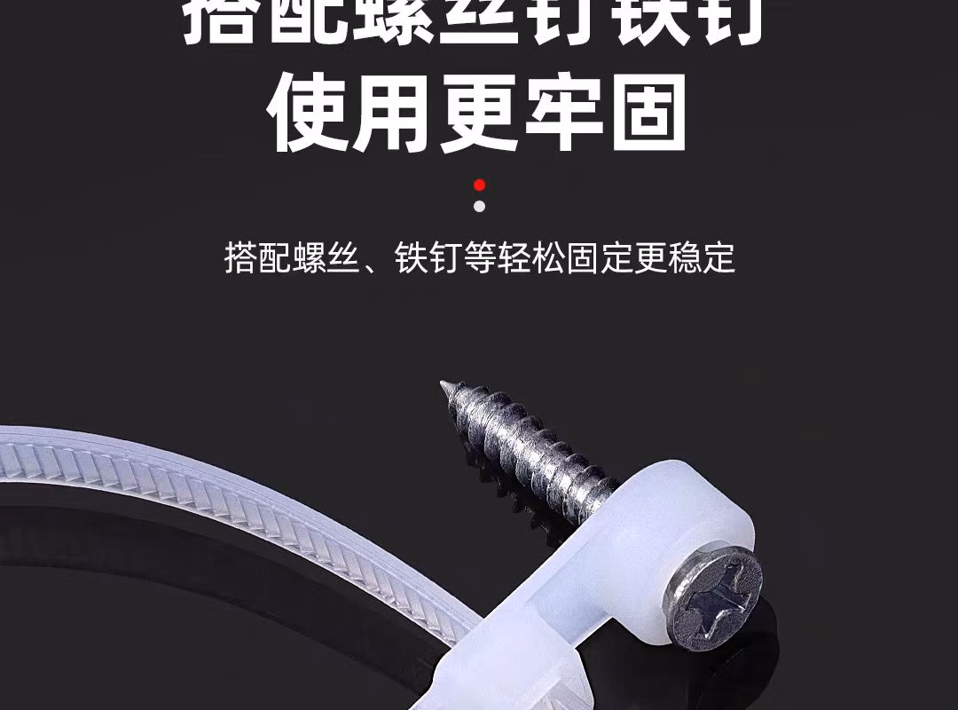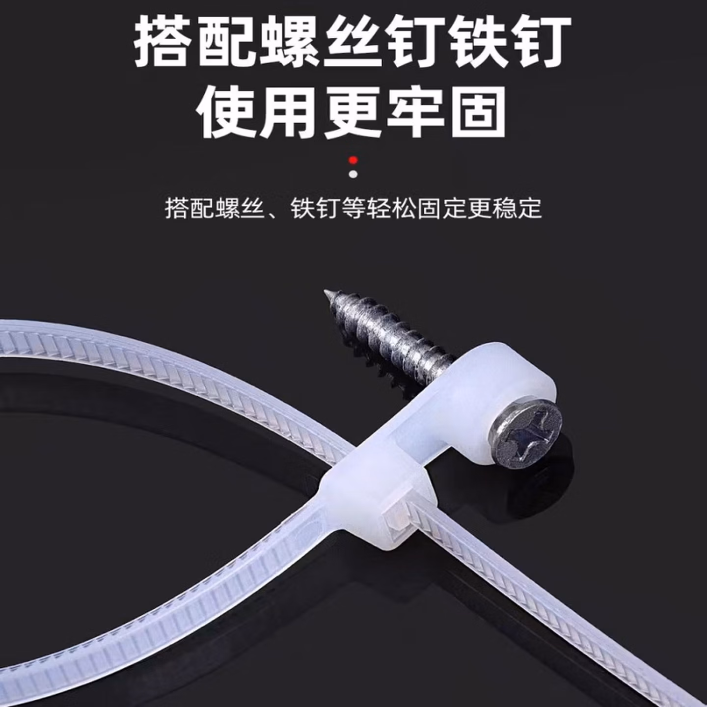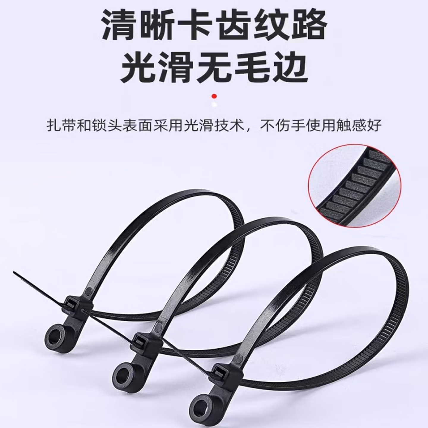 > 添翼固定头式尼龙扎带 螺丝圆孔墙面走线黑白扎带 塑料卡扣束线捆绑固定一拉得扎绳 固定头8*410 黑色100根