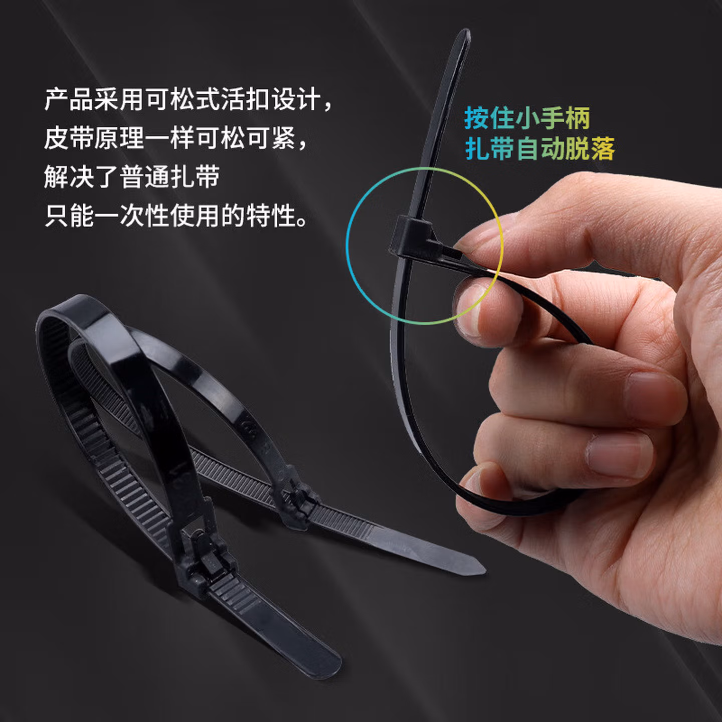 安达通 可松式扎带 塑料可拆卸彩色绑带活扣尼龙扎带重复使用 8*200*7.5mm宽100条黑色
